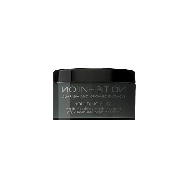 NO INHIBITION Moulding Mudd with guarana and organic extracts. A mixture of “kaolin” mud and mattifying agents build up and cover the hair making it opaque. A mixture of different kinds of beeswax hydrates the hair and clay gives optimal hold. Soothing agents balance the hair shaft hydration. Vitamin E act as an anti oxidant. Solar filters protect the hair from UV rays